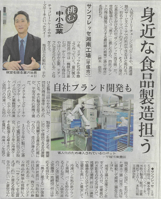 2026年01月06日 お知らせ 「神奈川新聞」に掲載されました 【掲載のお知らせ】 2025年12月20日発行の神奈川新聞「挑む中小企業」コーナーにて、湘南工場を中心とした弊社の取り組みが紹介されました。 ぜひご覧ください!